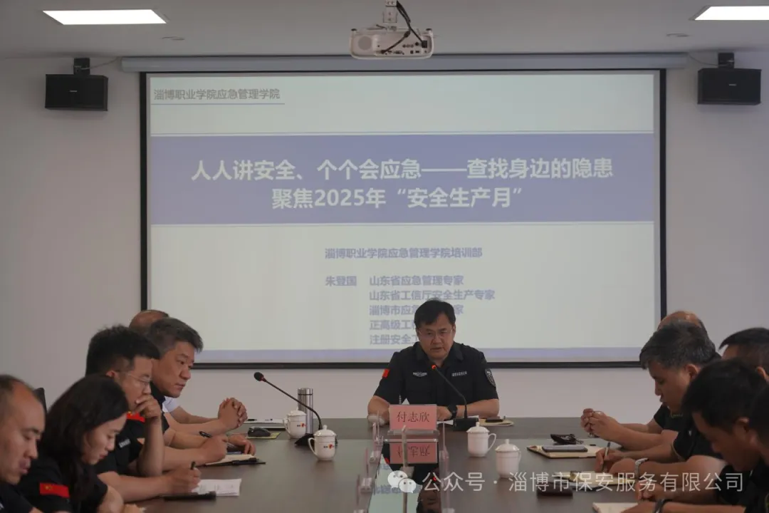 為深入貫徹市國資委“安全生產(chǎn)月”活動(dòng)要求,6月4日,市保安公司聚焦“人人講安全、個(gè)個(gè)會(huì)應(yīng)急——查找身邊的隱患”,邀請山東省應(yīng)急管理專家、正高級(jí)工程師,山東齊安檢測技術(shù)有限公司安全技術(shù)部經(jīng)理朱登國進(jìn)行專題授課,市保安公司黨委書記、董事長付志欣主持,公司黨委委員,各部室、中心、子公司,各大隊(duì)負(fù)責(zé)人及安全分管領(lǐng)導(dǎo)參會(huì)。